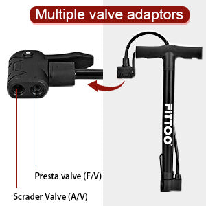 - 【What You Get】FITTOO small pump has multiple valve-adaptor to suit all types of bike tubes, including Schrader Valve (SV) and Presta Valve (PV), and the two ball/balloon adaptors are very useful to pump up your kid’s balloons or balls. This pump has a detachable handle bar, two small storage drawers, a hose clip, and a foldable wire cage. All these are perfectly designed for more functions and easy carry, but less weight and storage space.