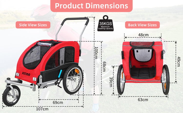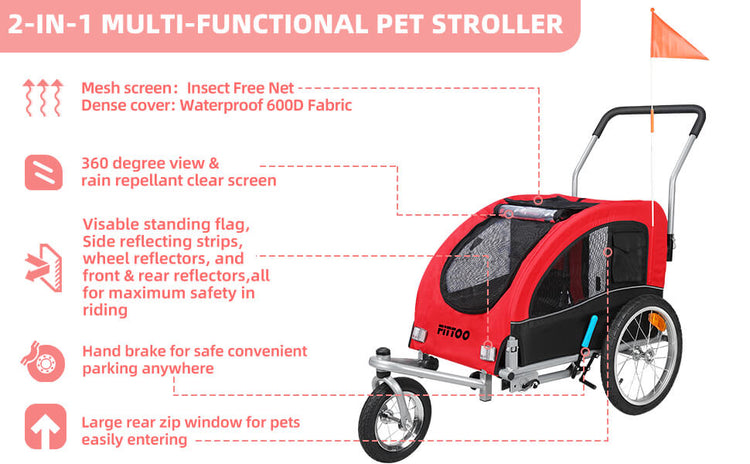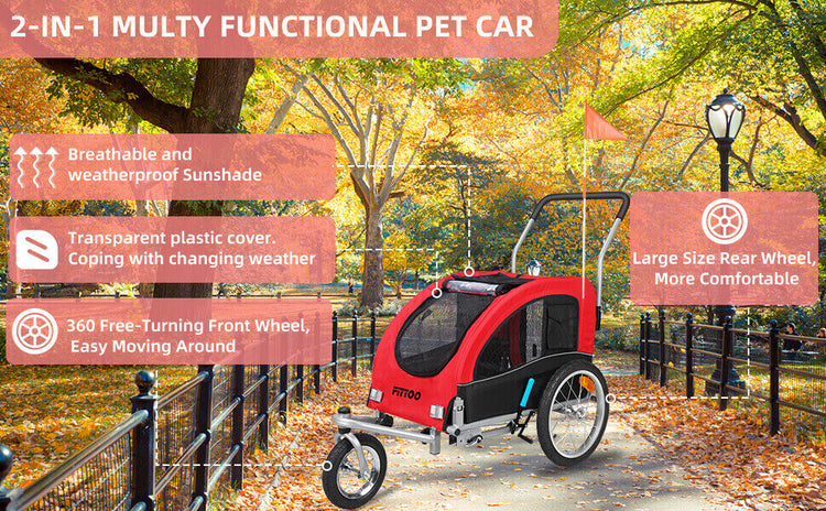 FITTOO Dog Bike Medium Pet Trailer, 2-in-1 Foldable Tow Behind Medium Bike Trailers, Bicycle Medium Pet Carrier Trailer with Universal Bicycle Coupler, Converts to Stroller/Jogger.