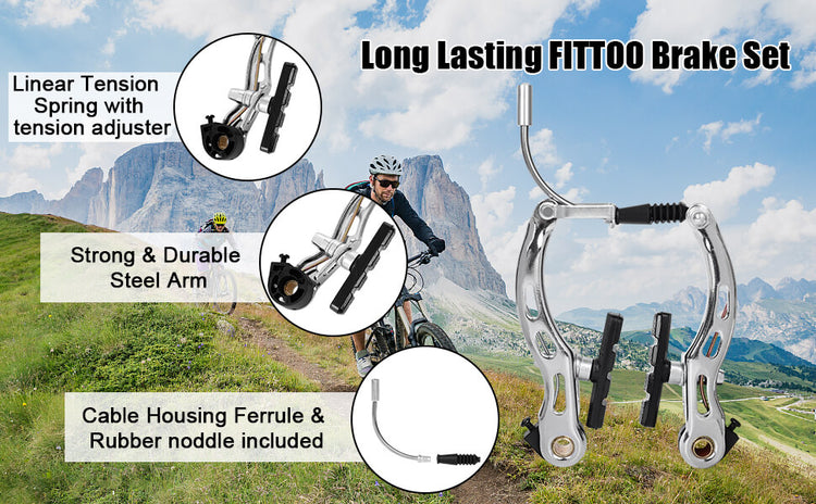 Complete Brake Kit: FITTOO V brake kit package is including: two pairs of brake arms (front & rear), two pieces of braking cables (front & rear), one pair brake levers (left & right), and mounting bolts etc. This is a complete brake set for your bike, and easy installation.