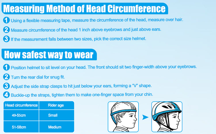 【Adjustable Fit System】The FITTOO helmet is adjustable, being able to loosen or tighten depending on your preference. If head circumference is around 49-55cm, choose the small size. If head circumference is around 51-58cm, choose the medium size. The helmet is generally for children between 5-14 years old.